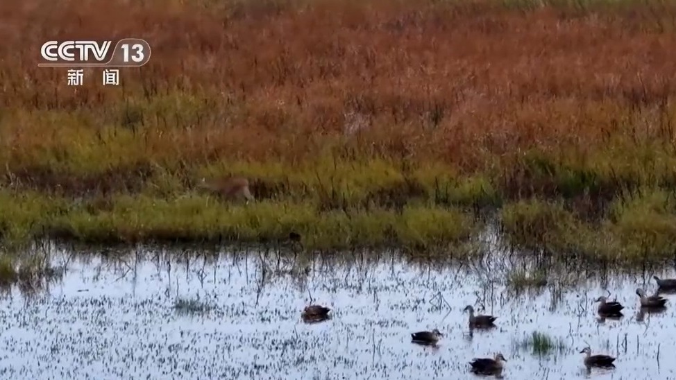 总台记者 石坤:以往我们在鄱阳湖拍摄候鸟的时候,拍到过麋鹿。今天我们拍到了河麂,这也是我们第一次发现河麂,感觉它们很活跃,和候鸟相处得也很愉快。