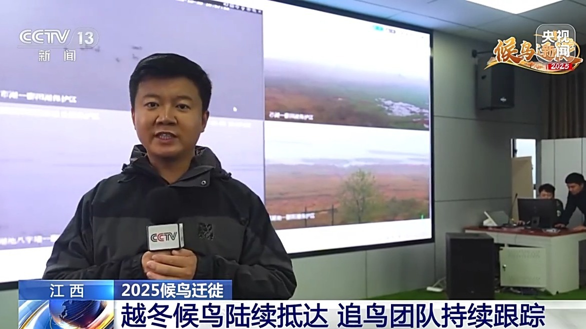 总台记者 刘昀彤:我身后的这块大屏幕显示的是保护区的智慧管理平台,我们和保护区的工作人员通过调取30多个远程的高清监控来查看候鸟的主要集中地区域。